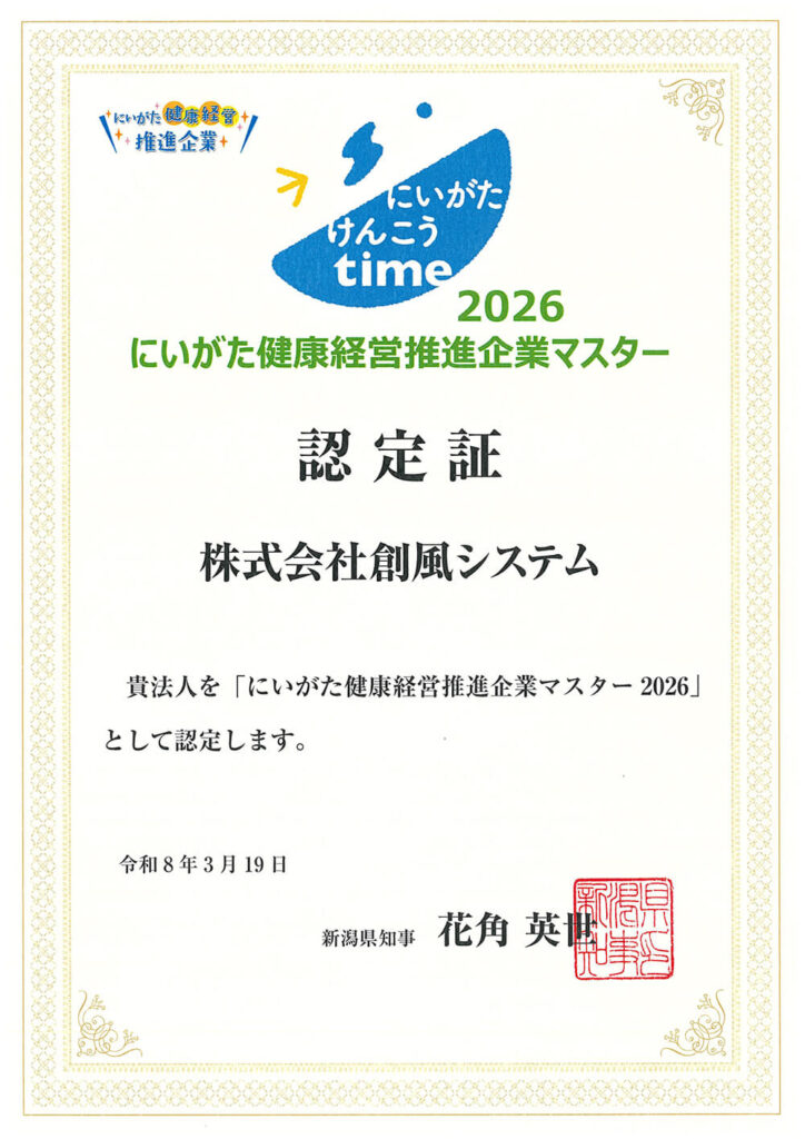 特に積極的に取り組む企業として「にいがた健康経営推進企業マスター2026」に認定されました。